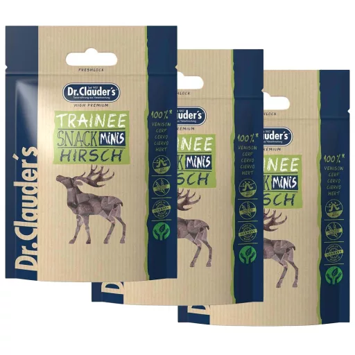 A Dr.Clauder’s Prémium Szarvas Tréning finom és egészséges szarvashúsos jutalomfalat, melyet kistestű kutyád imádni fog. 95% szarvashúsból készült.