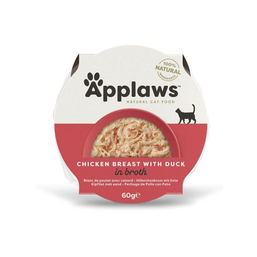 Az Applaws Cat Csirkemell Kacsahússal kizárólag természetes alapanyagokból készült prémium minőségű kiegészítő eledel felnőtt macskák számára 60% valódi csirkemellel és ízletes kacsahússal, praktikus műanyag tálkában.