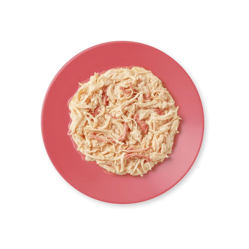 • egyedülálló, átlátszó tálkában kapható, melyről csak le kell húzni a fedőfóliát és máris kínálhatja cicájának, nincs szükség külön etetőtál használatára.