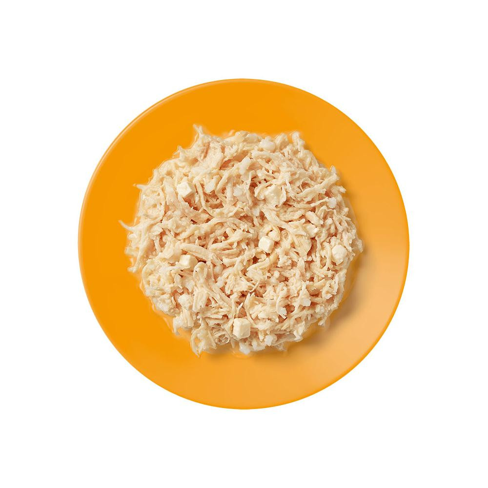 Összetevők: csirkemell 70%, főzővíz 24%, sajt 5%, rizs 1%.