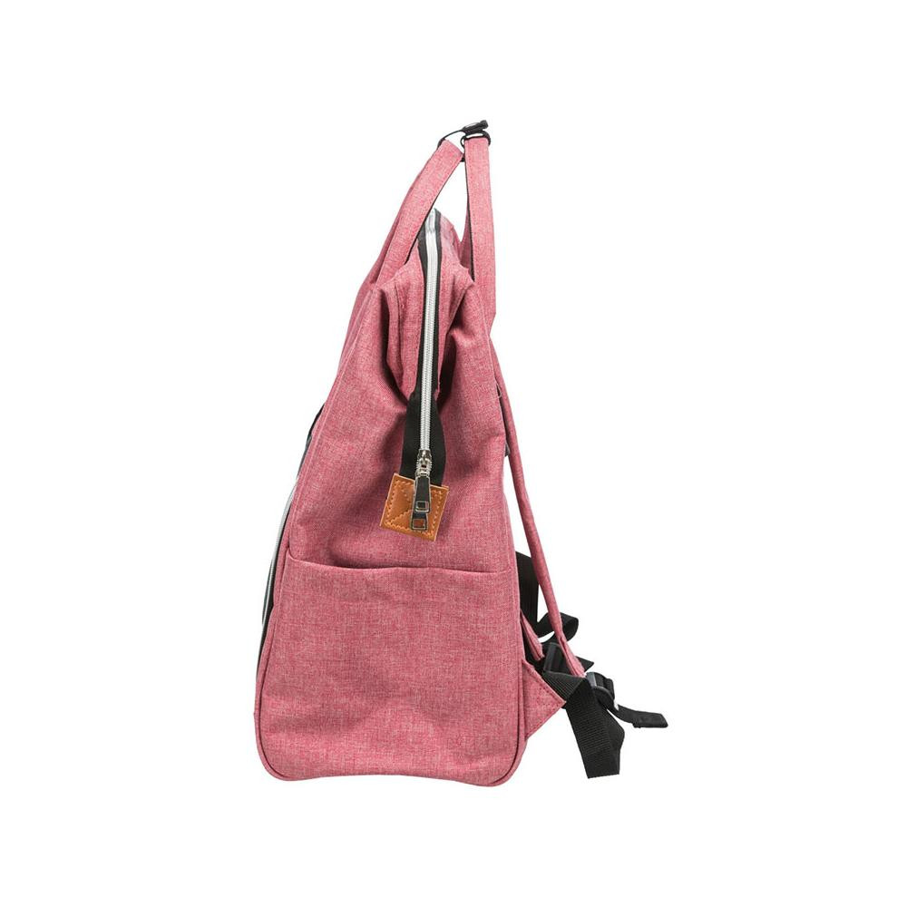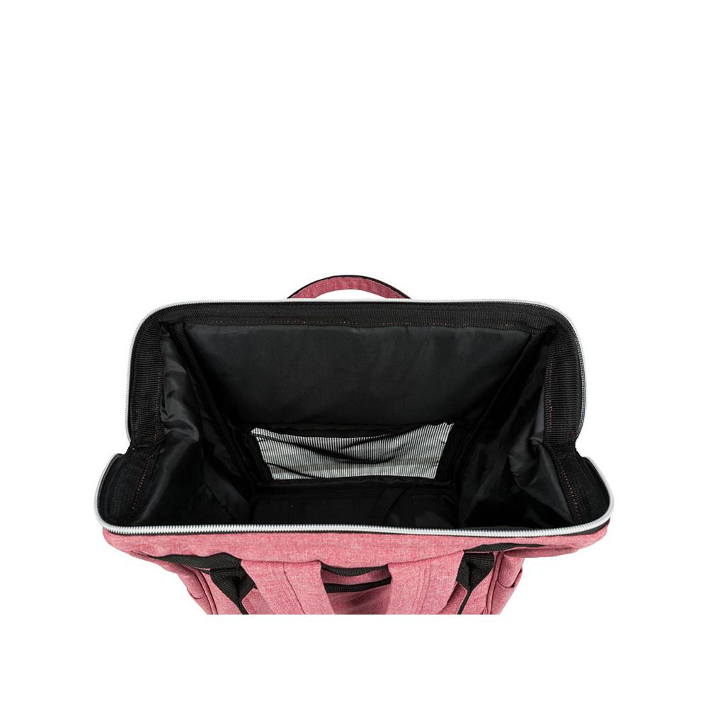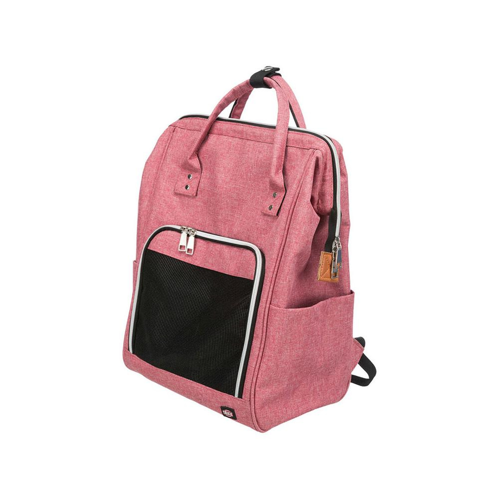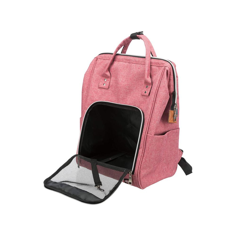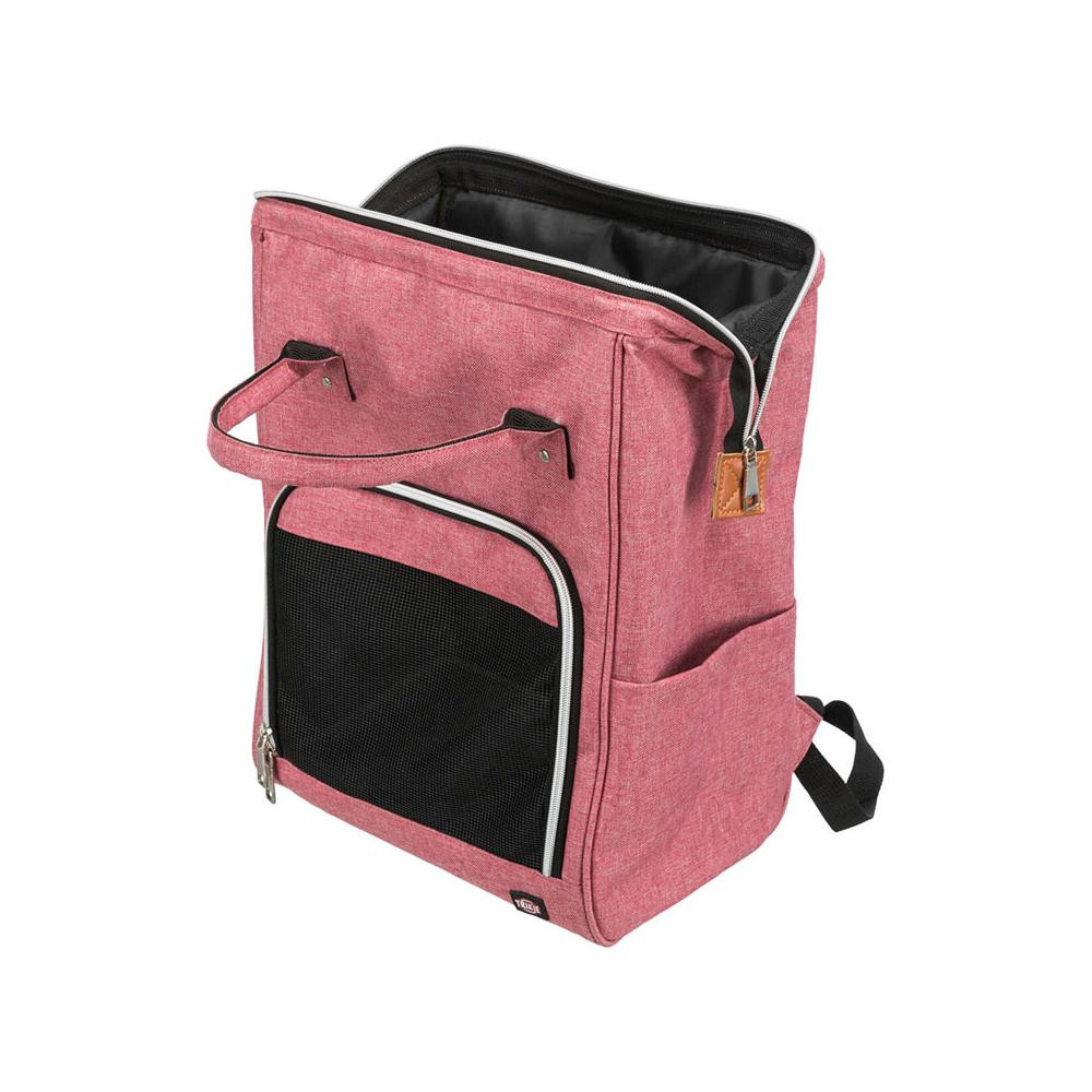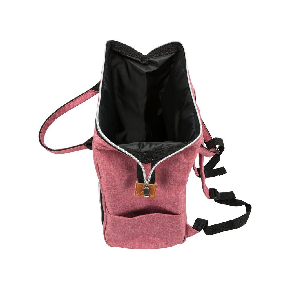 A TRIXIE Ava hátizsák piros színben kistestű kutyák részére (10kg-ig) - a fém megerősítés stabil formát biztosít, még a táska kinyitásakor is.