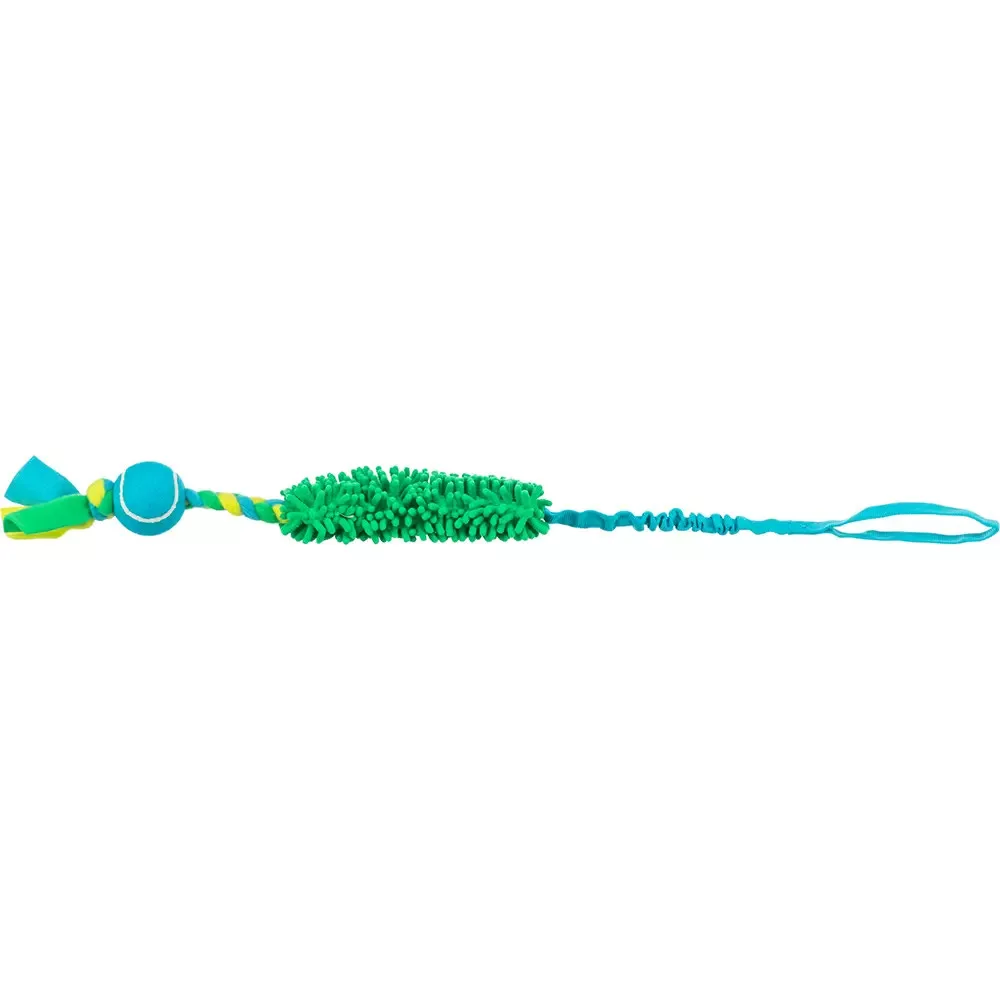 TRIXIE Bungee Kötél Teniszlabdával egy pihe-puha, ugyanakkor strapabíró játék húzkodós játékhoz teniszlabdával. A szár rugalmas, így tompítja a hirtelen rántásokat.