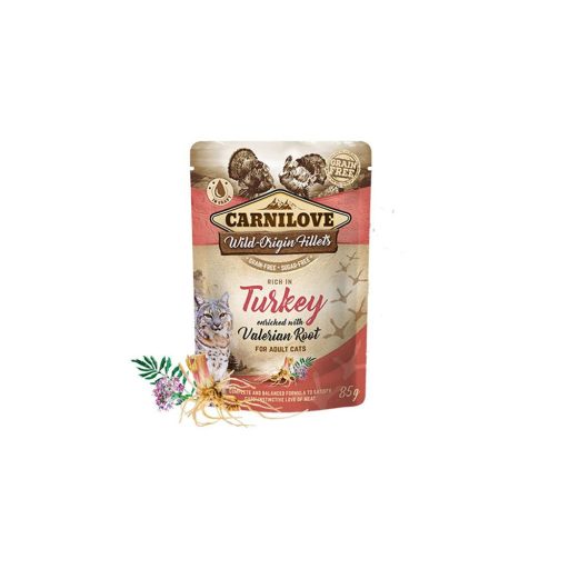 A Carnilove cat pulyka macskagyökérrel kizárólag természetes alapanyagokból készült szuperprémium minőségű eledel macskák számára 85% hústartalommal.