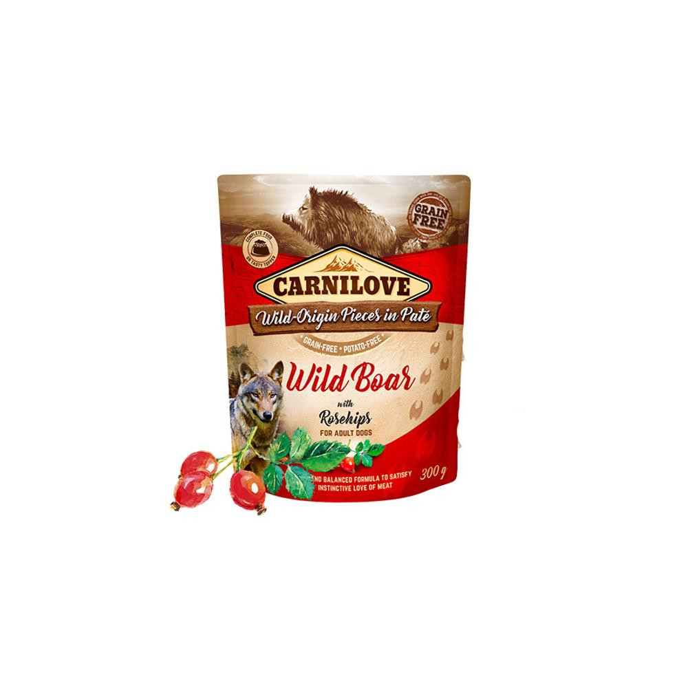 Összetevők: 59% pulyka, 26% vaddisznó, 9% hús alaplé, 4% csipkebogyó, 1% ásványi anyagok, 1.0% lenmagolaj.