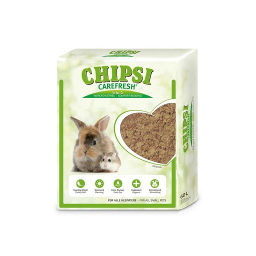 A CHIPSI Carefresh Natural természetes cellulóz szálakból készült alom, mely kényelmes és meleg, játékra csábít és teljesen természetes.
