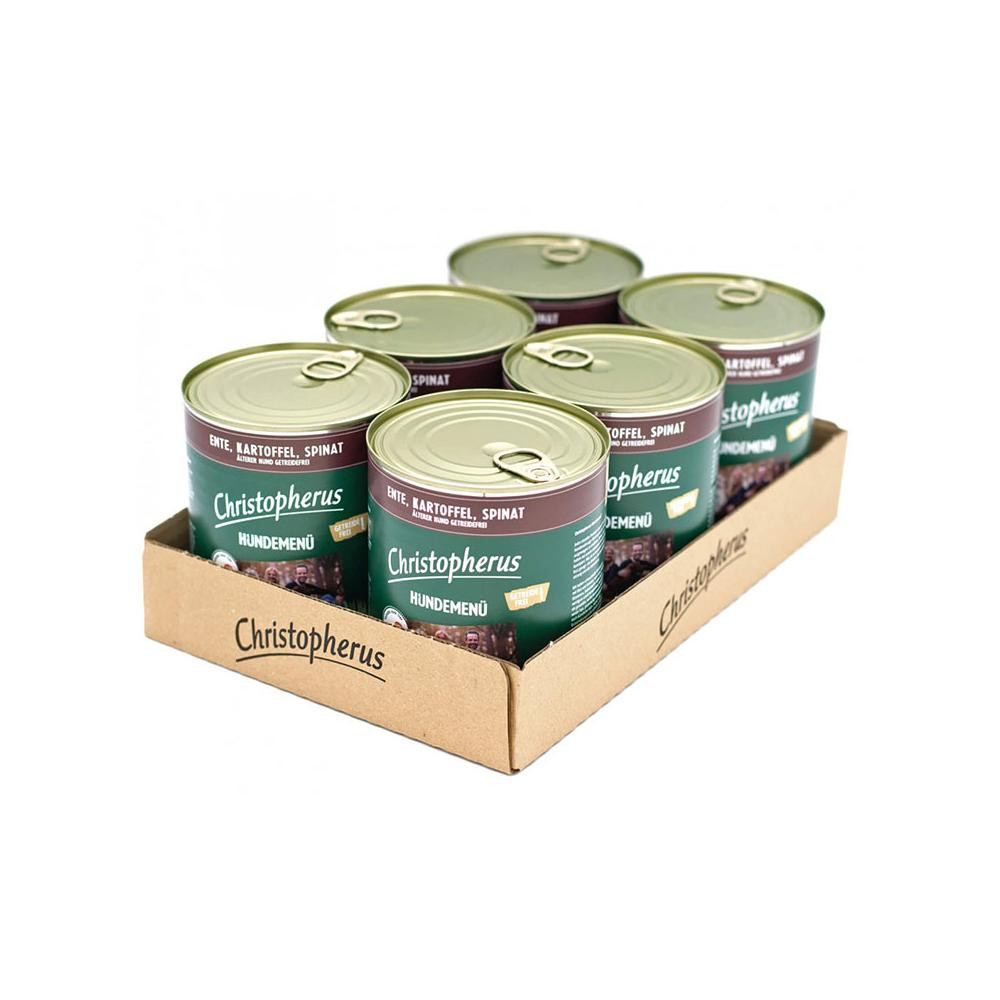 Összetevők: 62% kacsahús és belsőségek, 25,8% húsleves, 4% burgonya, 4% spenót, 2% borsókeményítő, 1% lignocellulóz, 1% ásványi anyagok, 0,2% lenolaj