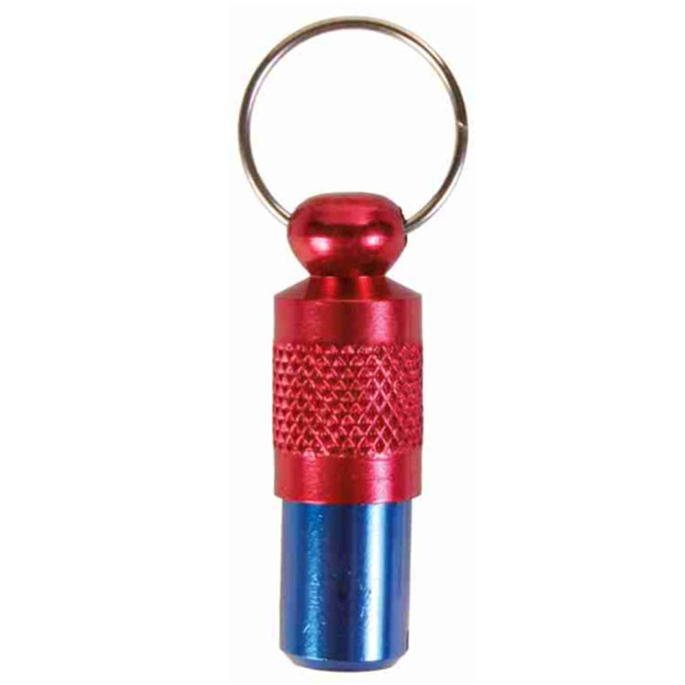 TRIXIE Címtartó fém, kék és piros színű, nyakörvre fűzhető címtartó kapszula kutyák és macskák részére.