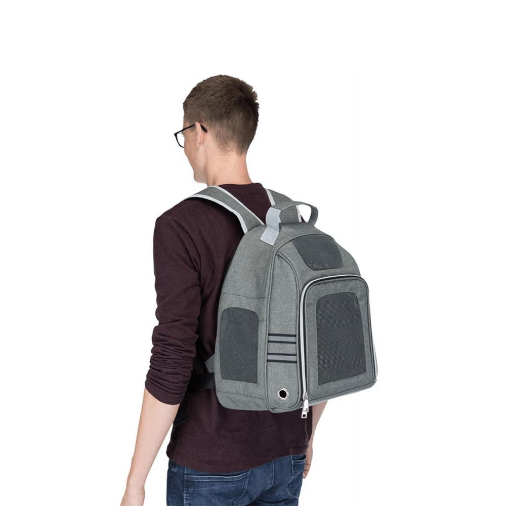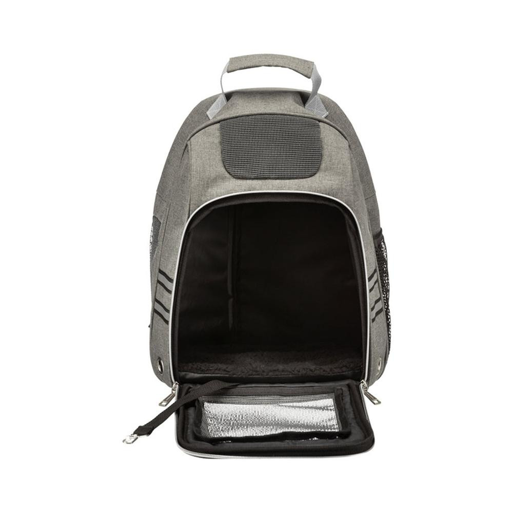 A TRIXIE Dan hátizsák szürke színben kistestű kutyák részére (6kg-ig) - stabil, merev forma.