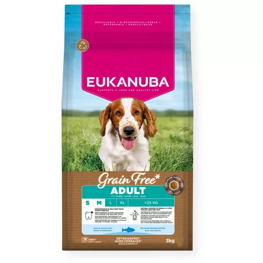 Összetevők: halliszt (29%, omega-3 zsírsavak természetes forrása), szárított édesburgonya (20%), egész borsó, szárított burgonya, sertészsír, szárított cukorrépapép (4%), napraforgó-olaj, hal szaftos lében, ásványi anyagok (tartalmaz nátrium-hexametafoszfát 0,39%), frukto-oligoszacharidok (0,29%, természetes prebiotikum).