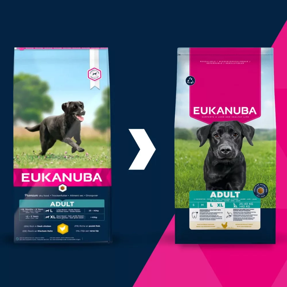 Összetevők: friss csirke (20%), szárított csirke és pulyka (19% tartalmaz csirke 13%, természetes glükozamin-, kondroitin- és taurin-forrás), kukorica, búza, árpa, zab, cirok, baromfizsír, szárított cukorrépapép (2.5%), csirke szaftos lében, kukoricadara, ásványi anyagok (tartalmaz nátrium-hexametafoszfát 0.34%), frukto-oligoszacharidok (0.25%, természetes prebiotikum), szárított egész tojás, szárított sörélesztő (természetes B vitamin és szelén forrás), glükozamin (állati szövetekből) (0.04%).