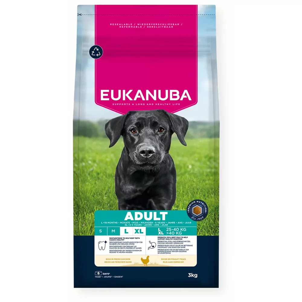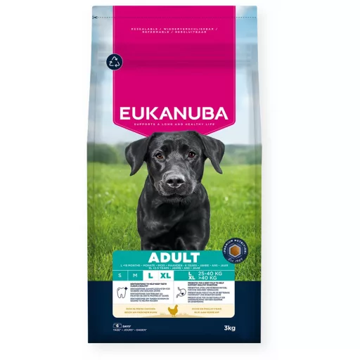 Összetevők: Friss csirke (18%), szárított csirke és pulyka (18%) - természetes forrású glükozamin, kondroitin-szulfát és taurin), kukorica, búza, zab, árpa, cirok, baromfizsír, szárított cukorrépapép (2.5%), csirke szaftos lében, kukoricadara, ásványi anyagok (nátrium-hexametafoszfát 0.34%), halliszt (természetes forrású omega-3 zsírsavak), szárított egész tojás, frukto-oligoszacharidok (0.25%, természetes prebiotikum), szárított sörélesztő (természetes B vitamin és szelén forrás), glükozamin (állati szövetekből) (0.04%).