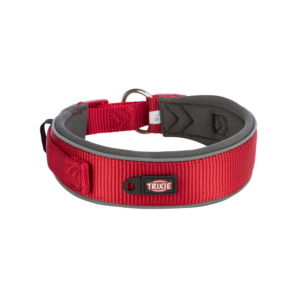 TRIXIE Extra Széles Prémium Textil Nyakörv - kiváló minőségű, extra erős kutyanyakörv neoprén párnázással, tehermentesített csattal, piros színben.