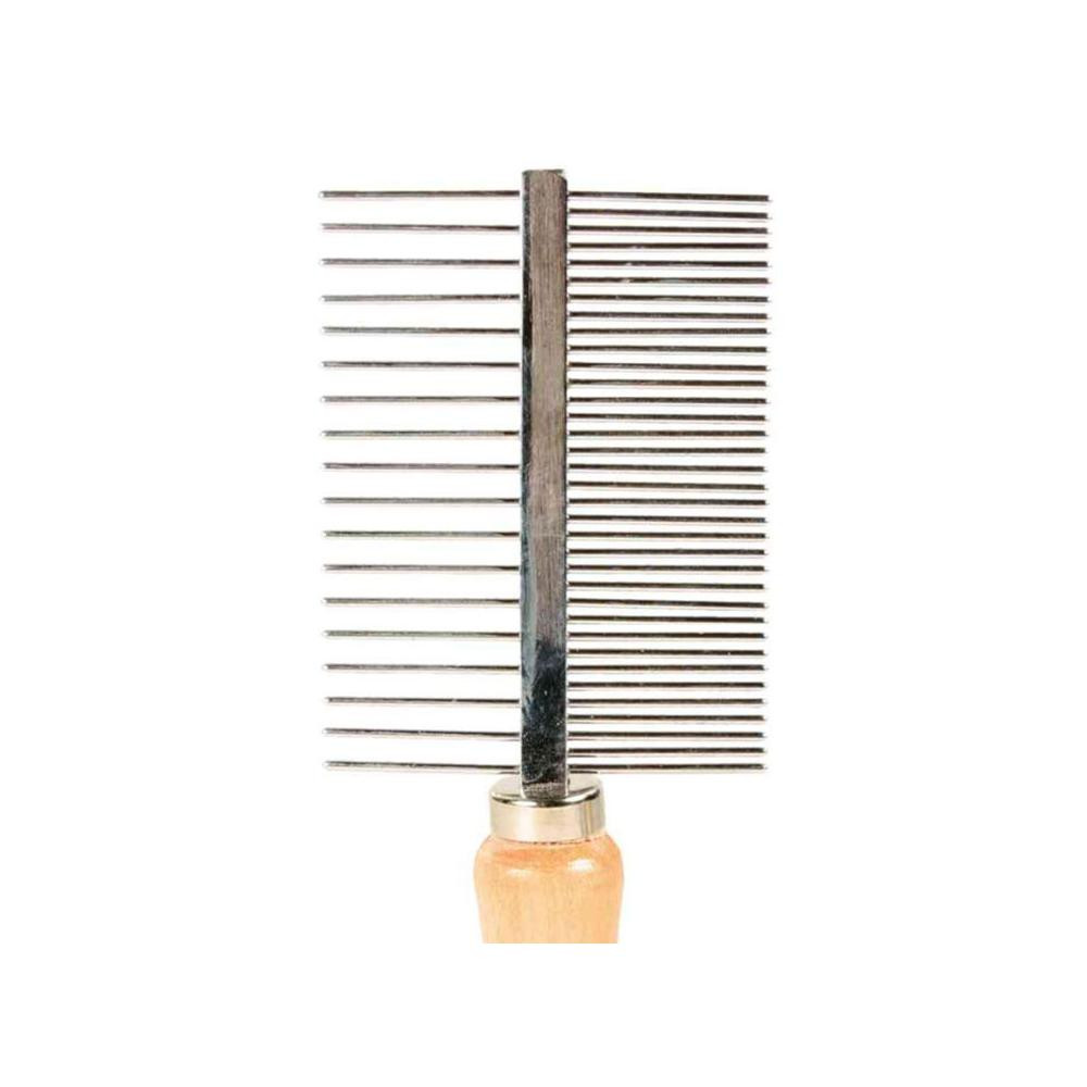 TRIXIE 2 oldalas fésű fa nyéllel kutyáknak és macskáknak a szőr fellazítására és kibontására. Lekerekített fogak a kíméletes szőrápolás érdekében. A fedőszőr és az aljszőrzet ápolására.