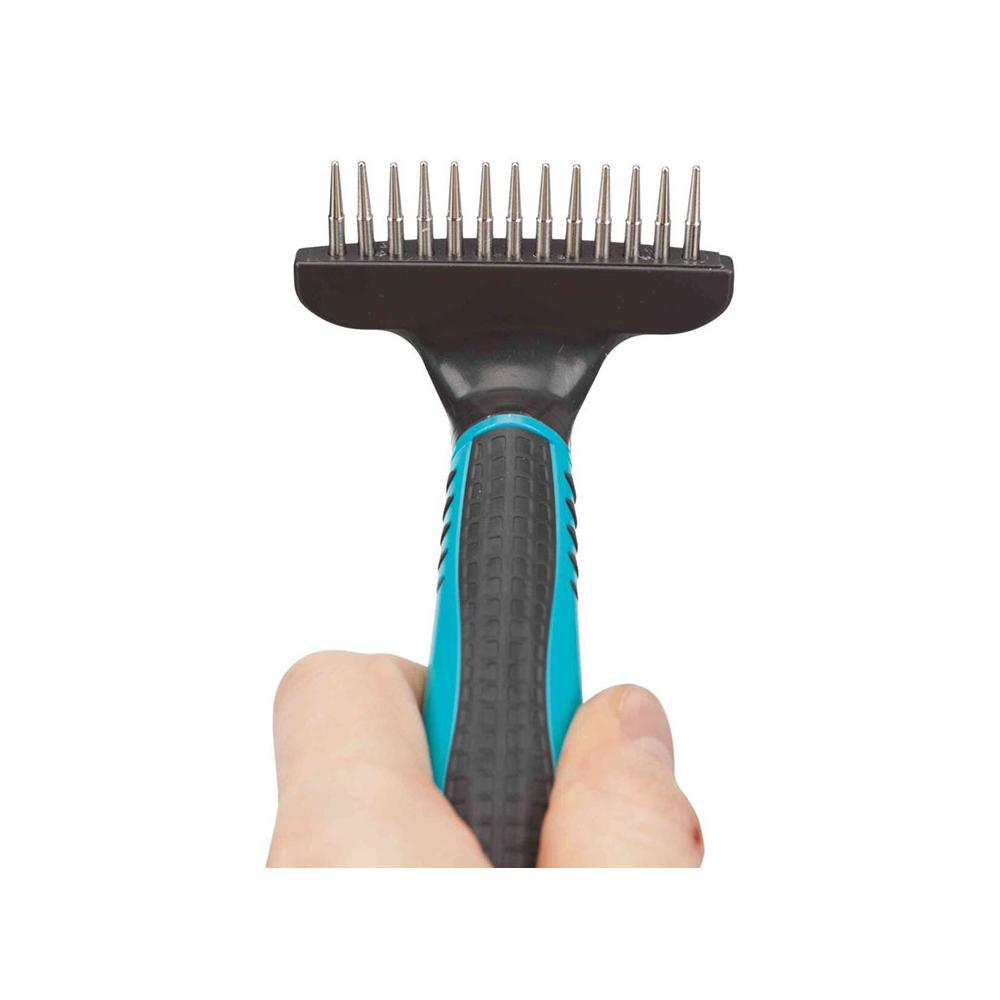 TRIXIE Forgófogú szőrbontó gereblye hosszú szőrű kutyáknak az összegubancolódott szőrzet kisimítására.
