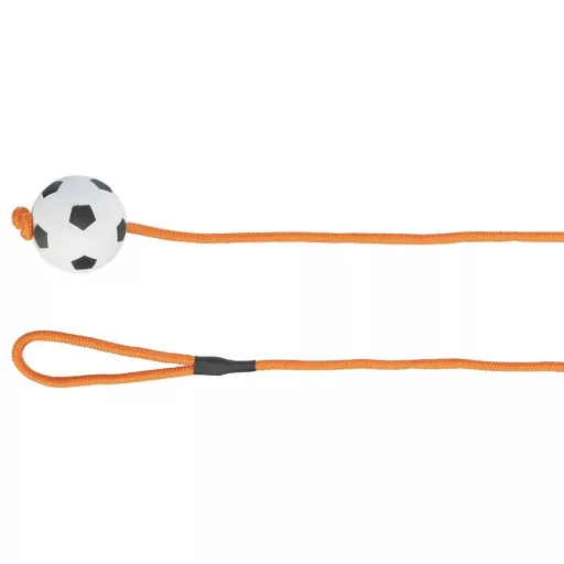 TRIXIE Foci labda kötéllel, a játékot megkönnyítő fogóval.