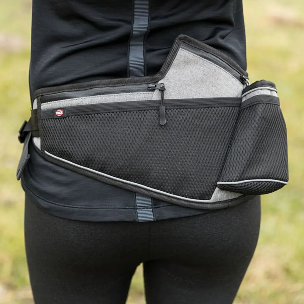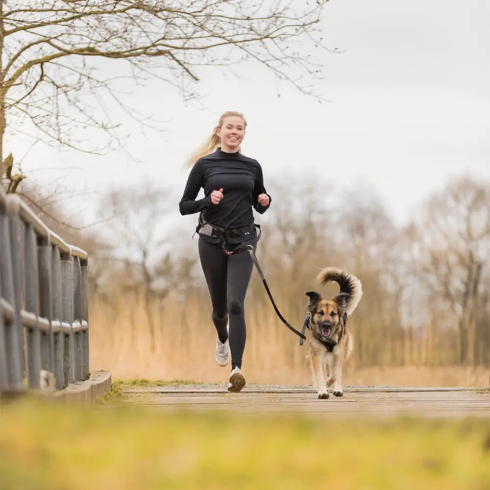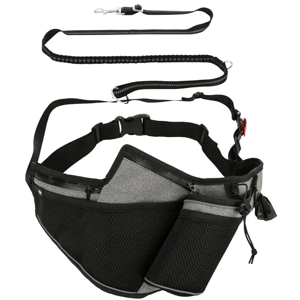A pórázzal és zsebekkel ellátott deréköv lehetővé teszi a szabad kezes kocogást. A kulcsok, rágcsálnivalók, italok és még a kutyapiszokzsákok is helyet kaphatnak az övtáskában. A beépített zsinór lengéscsillapítóval rendelkezik, amely tompítja a kutya hirtelen rángatózó húzását. A biztonsági funkció lehetővé teszi a vezeték gyors kioldását.