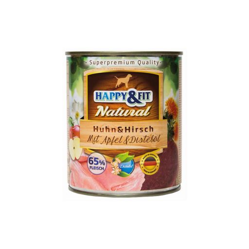 Összetevők: hús és állati eredetű származékok 65% (ebből 15% csirke, 15% szarvas), gyümölcsök (alma 5%), ásványi anyagok 1%, olajok és zsírok (0,1% sáfrányos szeklice olaj).