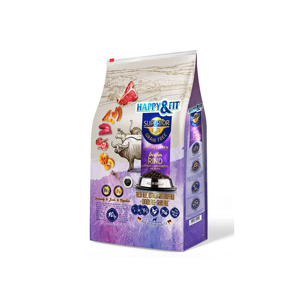 Összetevők: Marhahús (friss, 26%), marha (friss), borsókeményítő, édesburgonya (szárított, 10%), struccfehérje (szárított, 5%), marhafehérje (szárított), vízbivalyfehérje (szárított, 4%) , marhamáj (friss), alma (szárított), hidrolizált fehérje (növényi), sárgarépa (szárított), spenót (szárított), sütőtök (szárított, 1%), kondroitin-szulfát (0,005%), glükozamin (0,005%), mannanoligoszacharidok (0,005%), cikória (szárítva, 0,005%), yukka (szárítva), vörösáfonya (szárítva), rozmaring (szárítva), útifű maghéj, tengeri alga (szárítva, 0,002%), kakukkfű (szárítva), borsmenta (szárítva), petrezselyem (szárított).