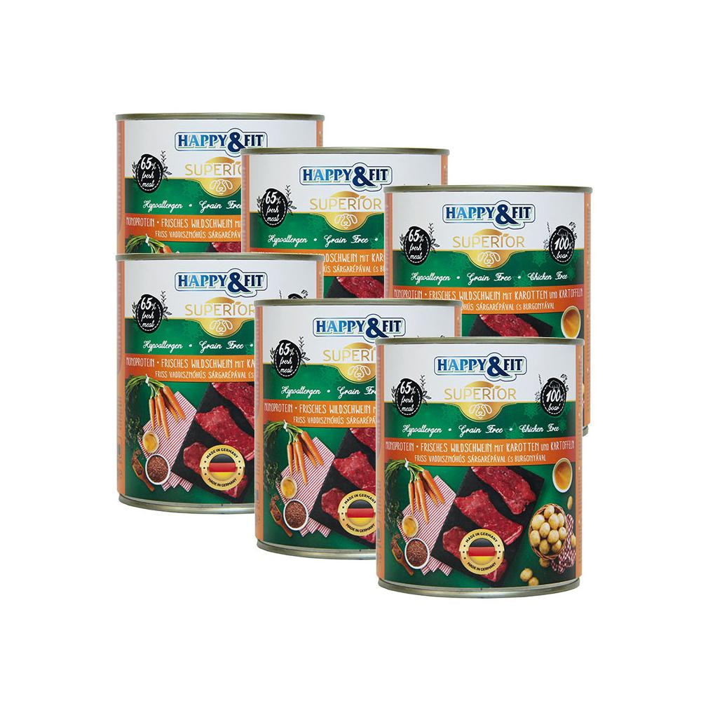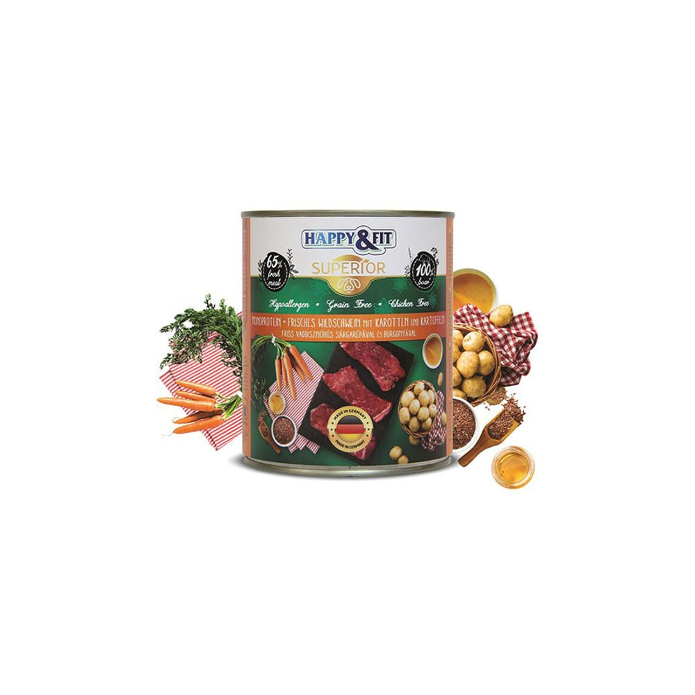 Összetevők: 65% vaddisznó hús és vaddisznó belsőség, 28,9% vaddisznó hús alaplé, 3% sárgarépa, 2% burgonya, 1% ásványi anyagok, 0,1% lenmagolaj.