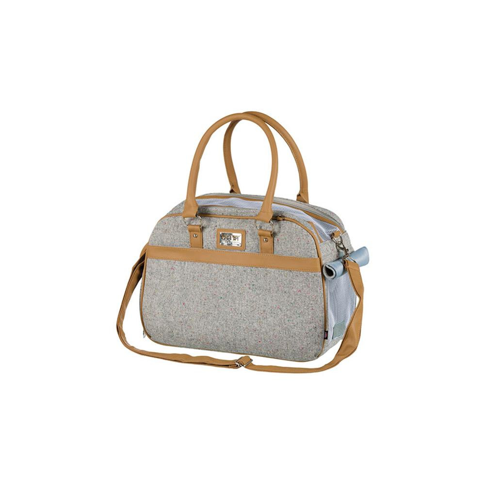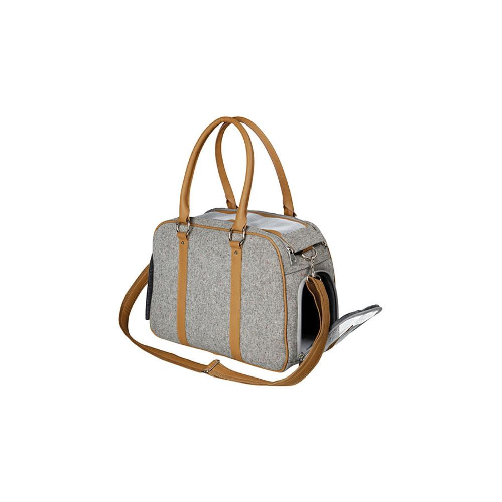 TRIXIE Helen szállítótáska elegáns szürke szövetből barna műbőrrel díszítve - kistestű kutyák részére (10kg-ig)