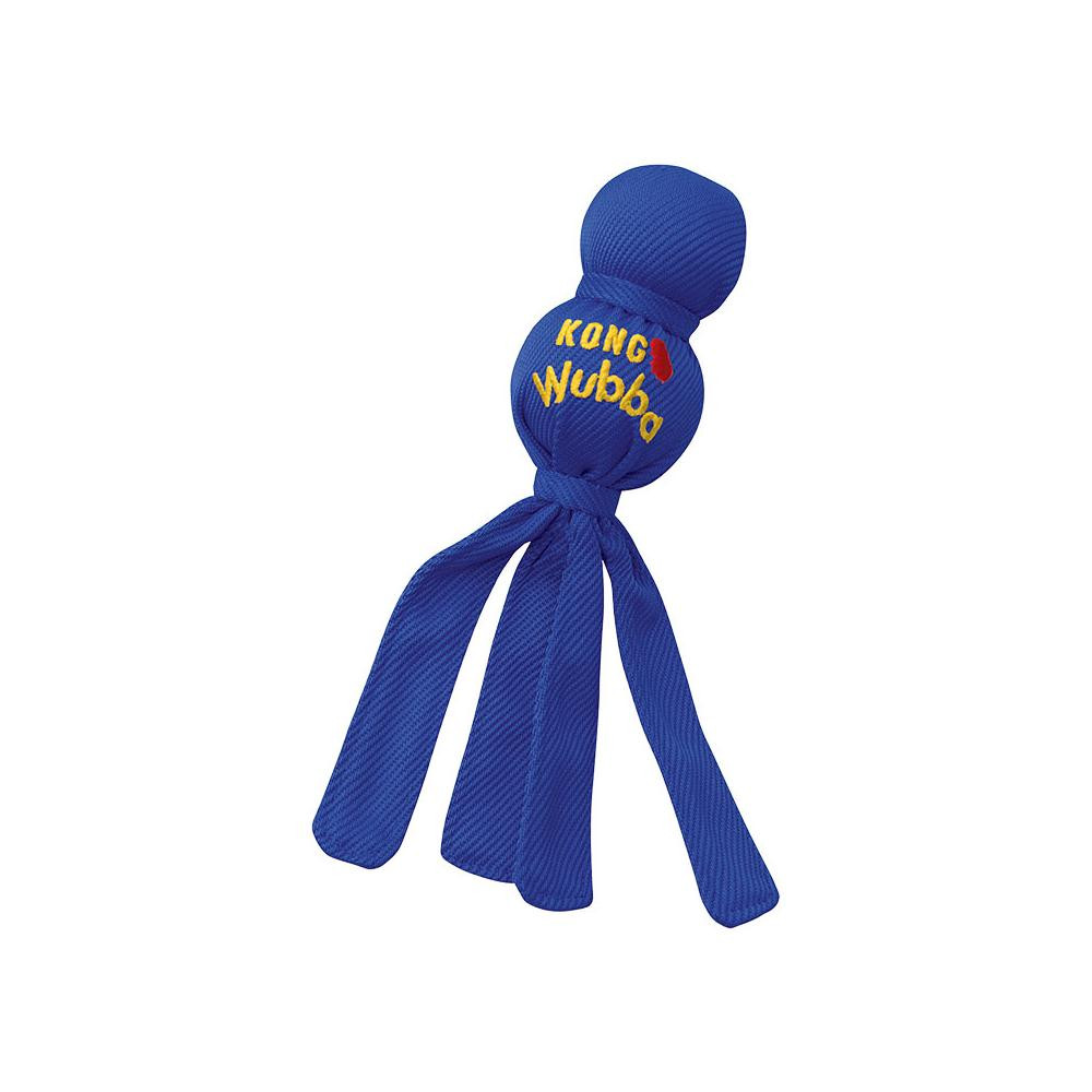 A KONG Wubba megerősített külső borítása 2 labdát rejt, kiválóan alkalmas apportírozásra, húzkodós játékra, illetve a kutyák imádják megragadni és rázni.