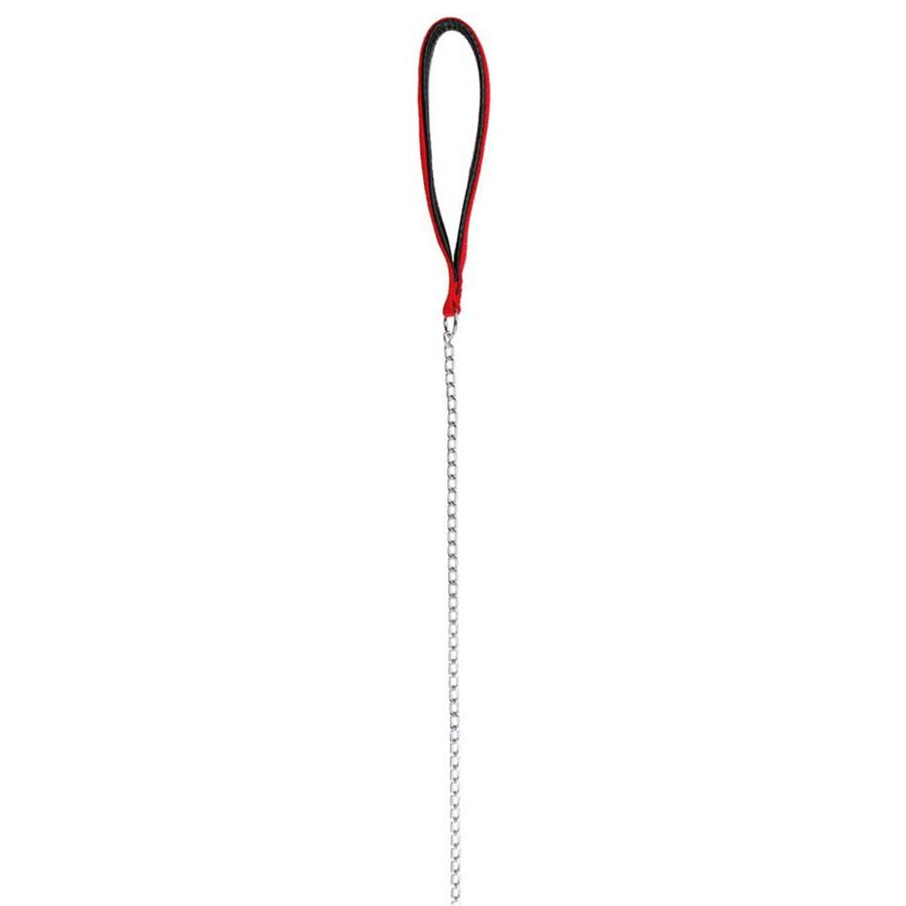 TRIXIE Láncos póráz piros színű textil fogóval - rendkívül kényelmes fogású a bélelt fogantyúnak köszönhetően.