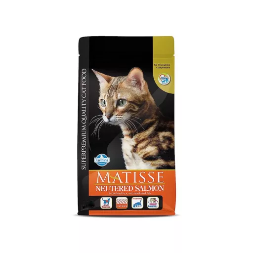 Összetevők: dehidratált hal (lazac) (32%), rizs (25%), kukorica, kukorica glutén, borsórost (8%), dehidratált csirkehús, csirkezsír, szárított cukorrépapép (6%), hidrolizált állati eredetű fehérje, halolaj, növényi olaj, dehidratált egész tojás, útifűmag, nátrium-klorid, kálium-klorid, kálcium-szulfát-dihidrát, szárított sörélesztő, mono-nátrium-foszfát.