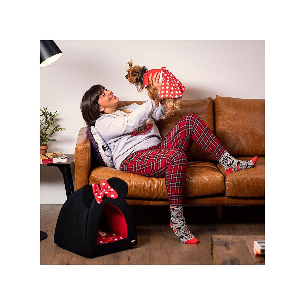 Bújós odú aranyos Minnie Egér dizájnnal szuper puha plüss poliészterből macskáknak és kistestű kutyáknak. A nagy egérfülekkel, a dekoratív masnival és a pöttyös párnával biztosan örömet szerez minden Disney rajongónak.