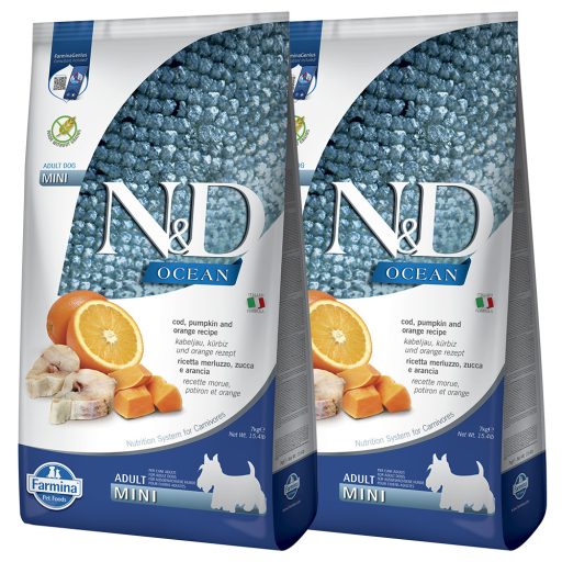 N&D Dog Ocean Sütőtök Tőkehal és Narancs Adult Mini 2x7kg