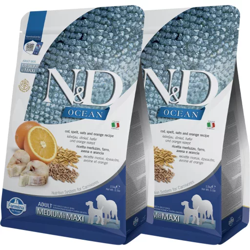 Összetevők: Friss tőkehal (24%), dehidratált tőkehal (24%), halolaj, tönkölybúza (10%), zab (10%), szárított sárgarépapép, borsórost, szárított sárgarépa, szárított lucerna, inulin, frukto-oligoszacharid, mannán-oligoszacharid, dehidratált édes narancs (0,5%), dehidratált alma, gránátalmapor, spenótpor, útifű maghéj (0,3%), porított feketeribizli, porított áfonya, nátrium-klorid, szárított sörélesztő, kurkumagyökér (0,2%), glükozamin, kondroitin-szulfát, (körömvirág kivonat (lutein forrás).