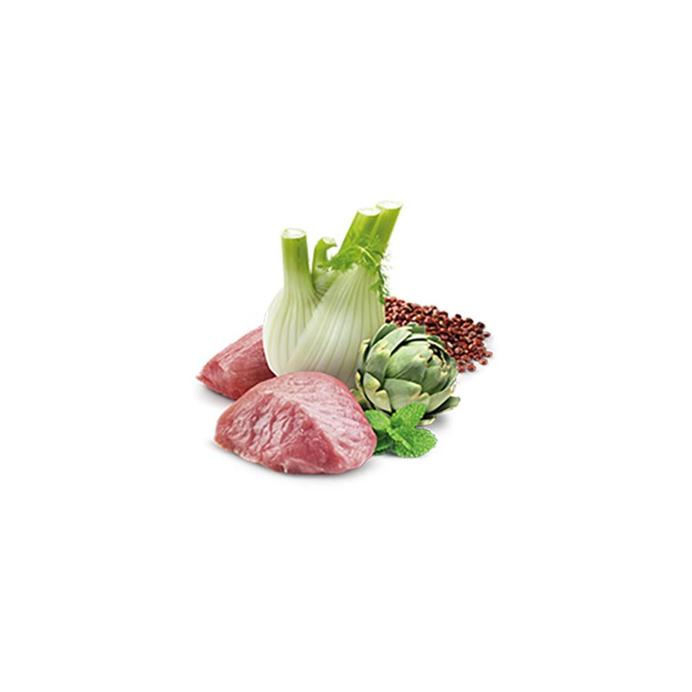 Összetevők: Bárány (35%), hidrolizált halfehérjék, quinoa magok (5%), halolaj, articsóka, édeskömény, frukto-oligoszacharidok, élesztő kivonat (mannan-oligoszacharidok forrása), kolin-klorid, szárított sörélesztő, chondroitin-szulfát, glükozamin, vitaminok, ásványok.