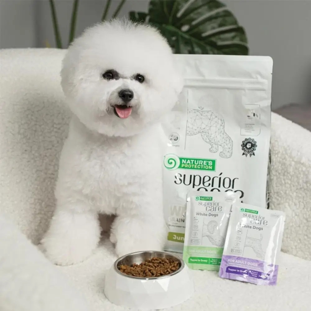Kifejezetten alkalmas fehér, illetve világos szőrű kutyáknak, illetve ideális választás lehet érzékeny emésztésű kutyák számára is.