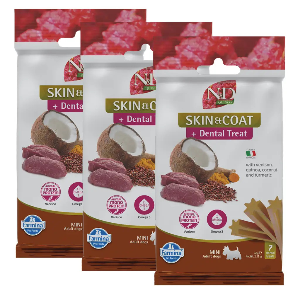 N&D Quinoa Jutalomfalat Skin&coat Szarvas Mini, 3x60g