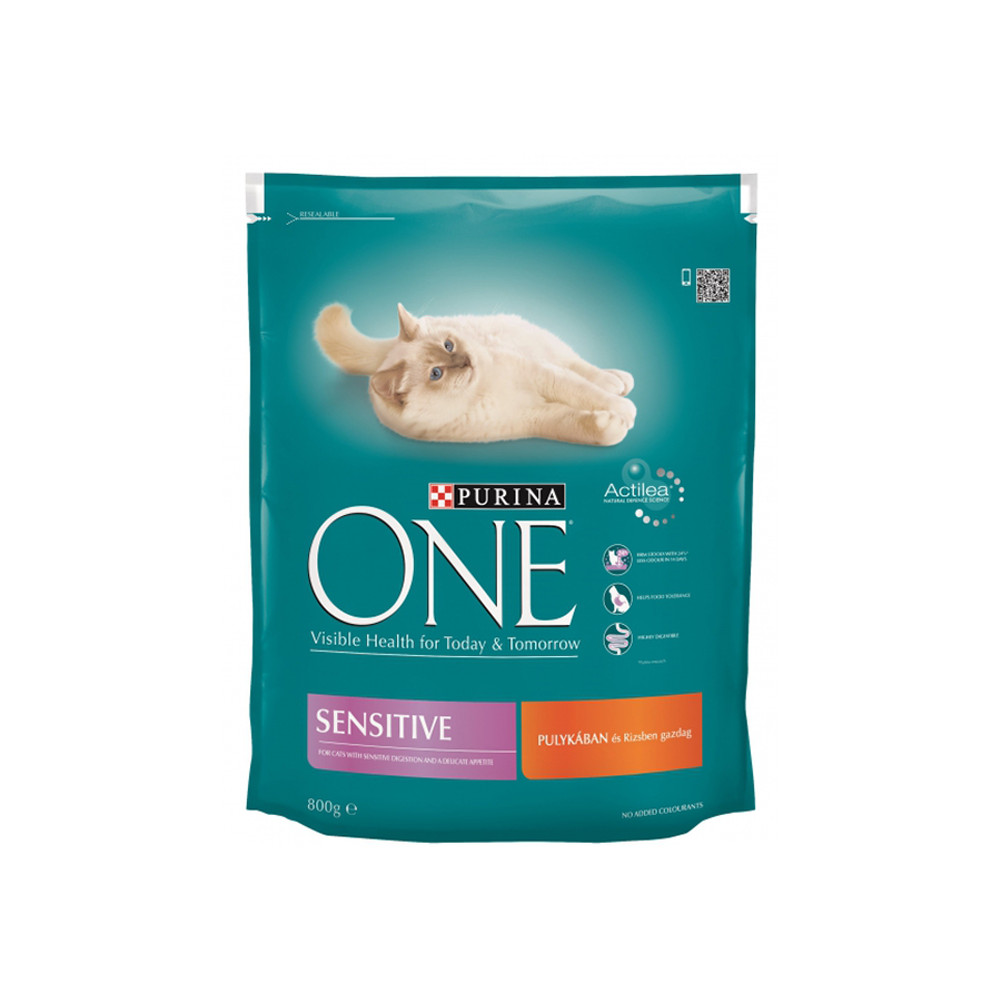 Purina One Sensitive kiváló ízletessége és mérsékelt számú fehérjeforrása segít a táplálék intolerancia elkerülésében és az étvágy fokozásában.