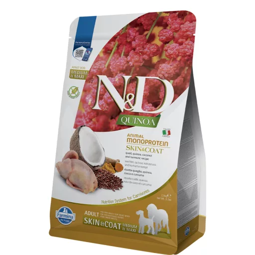 Összetevők: Friss fürjhús (18%), dehidratált fürjhús (18%), borsó keményítő, halolaj (heringből), quinoa mag kivonat (8%), lenmag, szárított kókusz (2.5%), kurkuma (2.5%), inulin, frukto-oligoszacharidok, élesztő kivonat (mannan-oligoszacharidok), kalcium-karbonát, dikalcium-foszfát, útifű, kálium-klorid, nátrium-klorid, szárított sörélesztő, glükozamin, kondroitin-szulfát, körömvirág kivonat (lutein forrás).