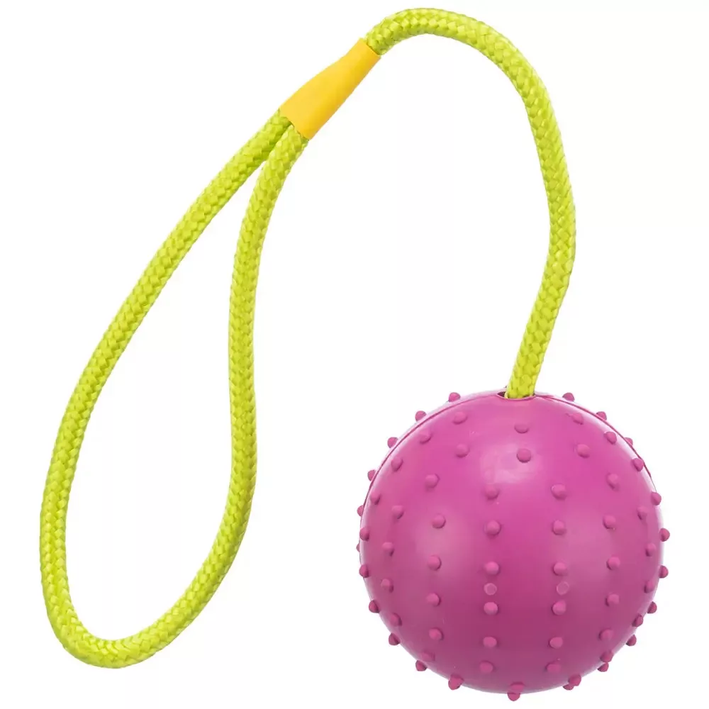 TRIXIE Tömör Gumi Labda kötéllel - kétféle labda átmérővel, 6cm és 7 cm. A kötél hossza 30 cm. Különböző színekben.