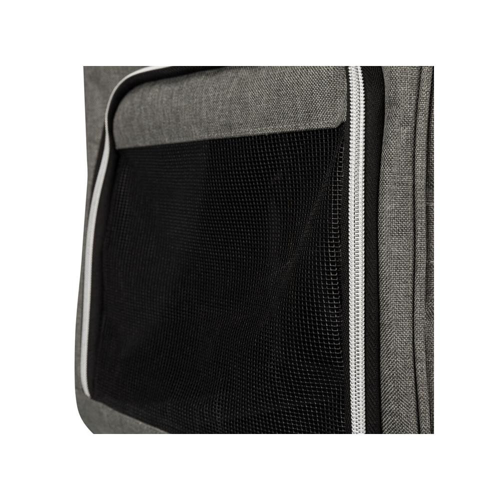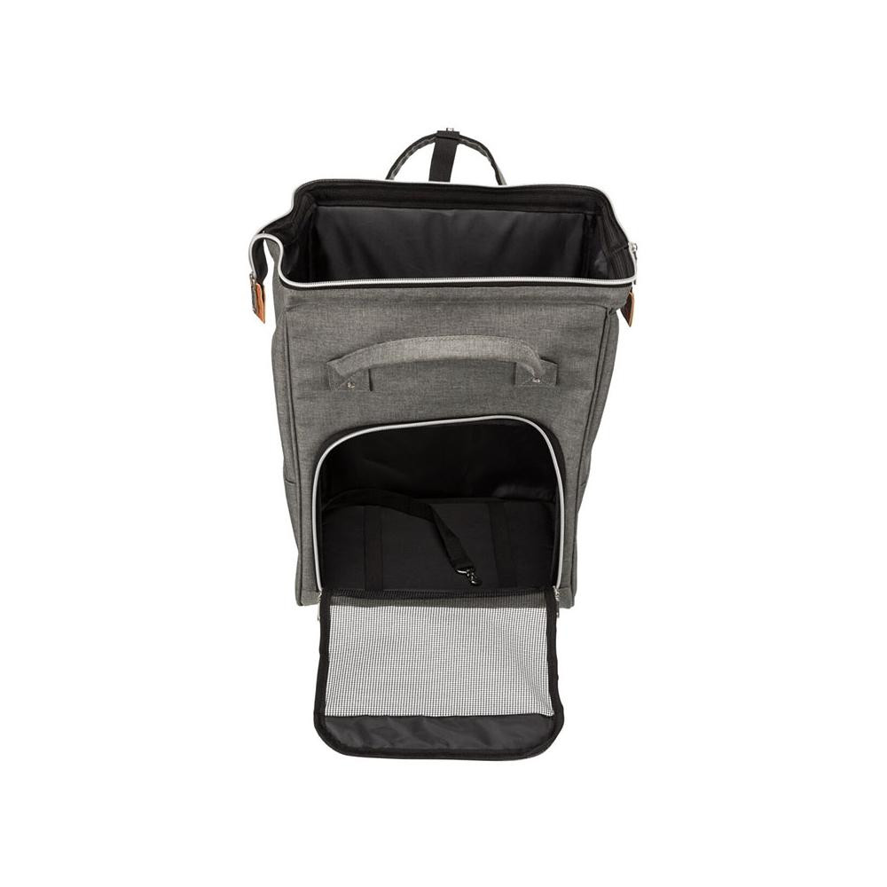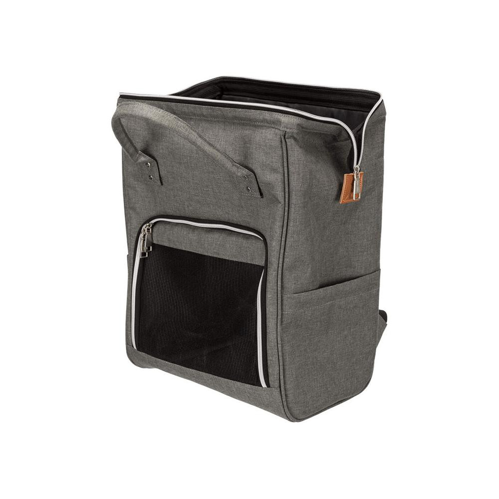 A TRIXIE Ava hátizsák szürke színben kistestű kutyák részére (10kg-ig) - a fém megerősítés stabil formát biztosít, még a táska kinyitásakor is.