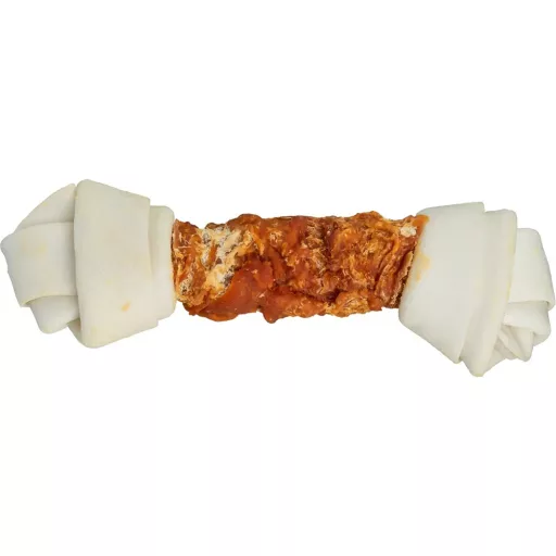 Trixie Csomózott Csont csirkével több méretben - jutalomfalat felnőtt kutyák részére nyers marhabőrből, csirkehússal bevonva.