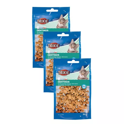 Trixie Denta Fun Dentinos - ízletes fogtisztító jutalomfalat macskáknak. Nem tartalmaz hozzáadott cukrot.