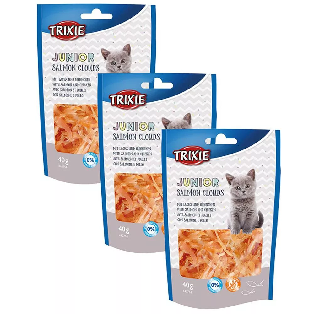 Trixie Lazacfelhők - lazachúsból készült ízletes jutalomfalat kölyökmacskáknak 55% lazac és 20% csirkehús tartalommal. Nem tartalmaz hozzáadott cukrot.