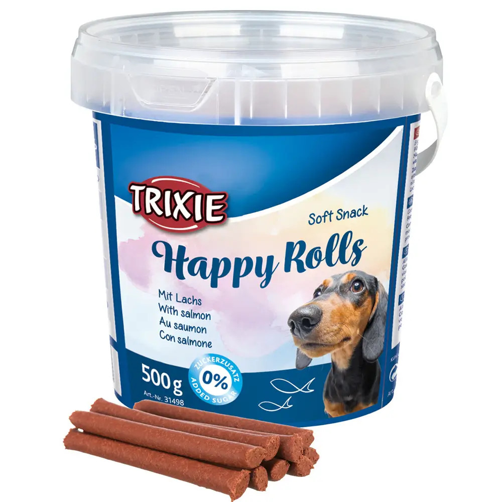 Trixie Soft Snack Happy Rolls - puha, jutalomfalatkák kutyáknak lazacos ízesítéssel. Nem tartalmaz hozzáadott cukrot.