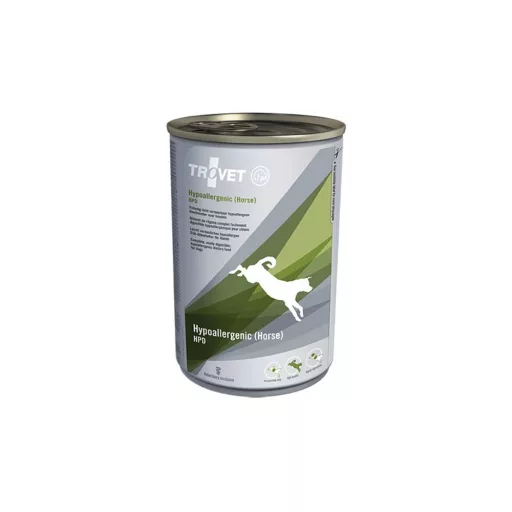 TROVET HYPOALLERGENIC HORSE (HPD) teljes értékű, könnyen emészthető eledel lóhússal táplálék allergia, illetve érzékenység okozta bőr és emésztőszervi elváltozások esetén kölyök és felnőtt kutyák számára.