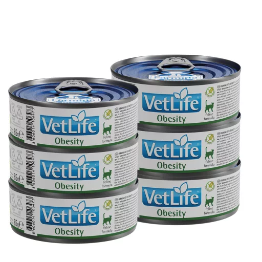 A Farmina Vet Life Cat Obesity teljes értékű diétás eledel macskák számára a túlzott testsúly csökkentésére.